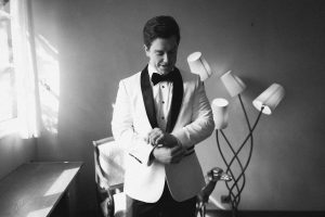 Kevin was surrounded by his father, stepfather, and closest friends. At one point, he was still finishing his vows by the window. The light coming in from the hills was soft and directional, almost cinematic. He admitted feeling the weight of the day. That quiet nervousness that happens when everything you have planned for months is finally real.
